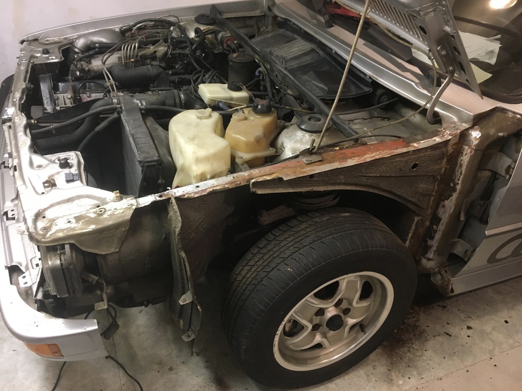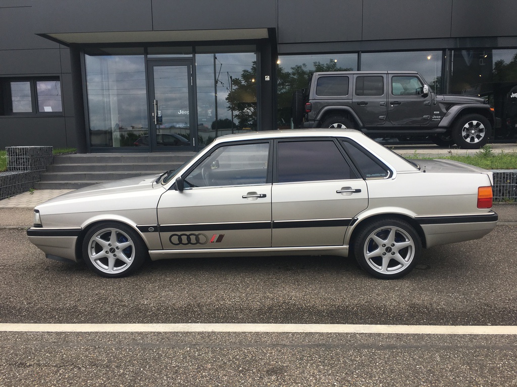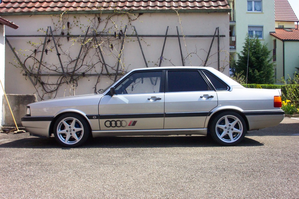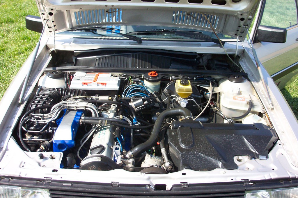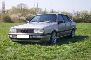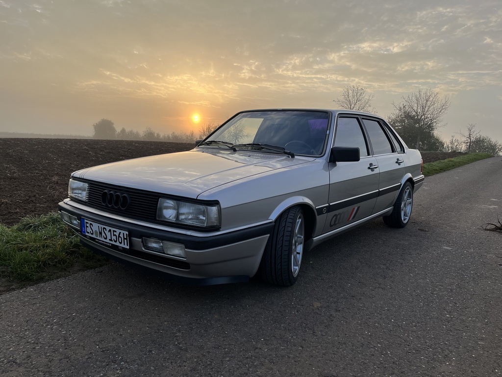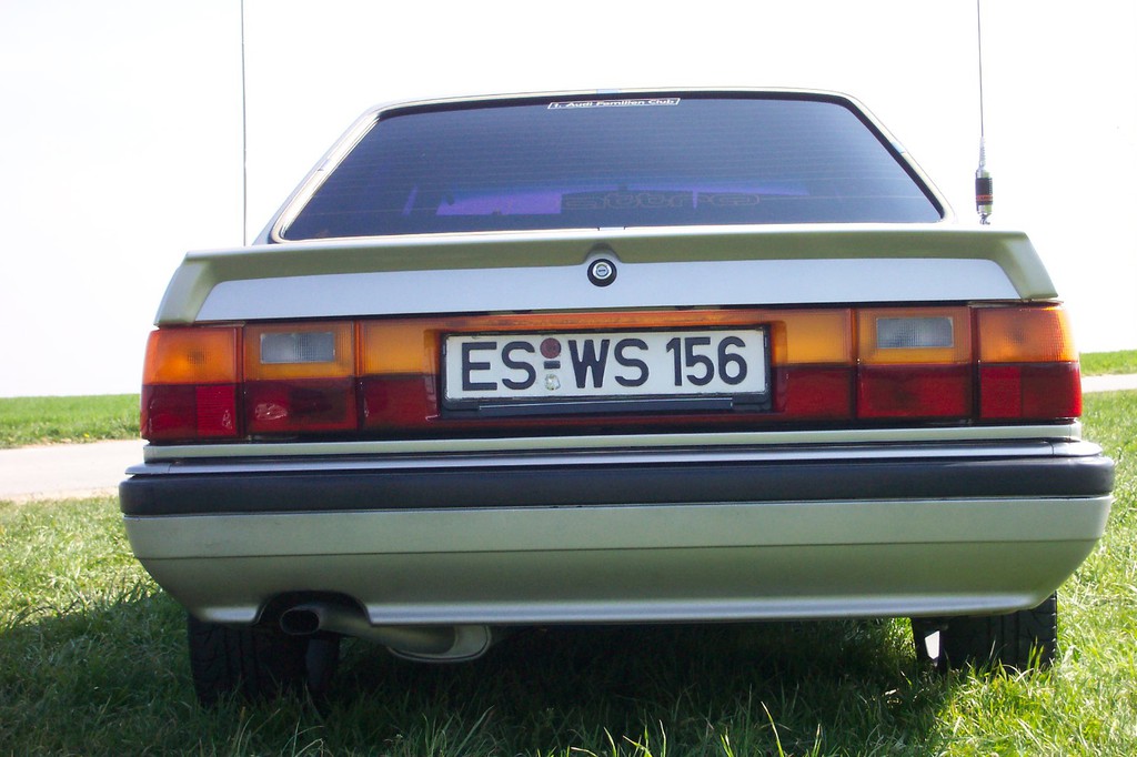 Umbauten: Motor wurde Zerlegt, Kopf und Ölwanne Blau Lackiert, Ansaugbrücke Poliert, Servolenkung Nachgerüstet, Achsen vorne wie hinten Zerlegt, Lagerbuchsen erneuert, Achsträger entrostet, versiegelt und Blau lackiert. Hinterachse auf Bremsscheiben umgerüstet. Scheiben hinten abgetönt, Weiße Blinker vorne, Quattro Heckspoiler.